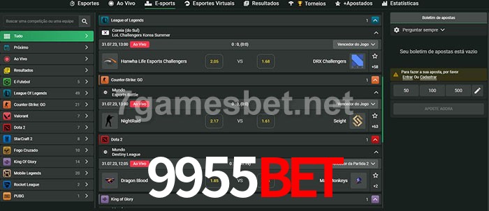 O 9955Bet oferece uma grande seleção de opções de apostas em e-sports com probabilidades competitivas
